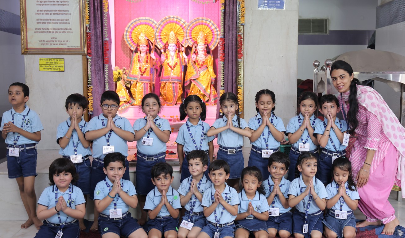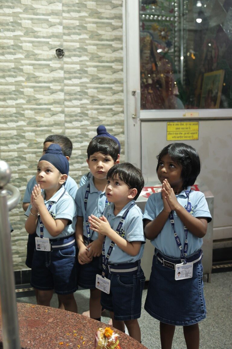 We walked along the quiet way, To the temple bright and calm today! We rang the bell, it gave a chime, Soft and sweet, just like a rhyme.